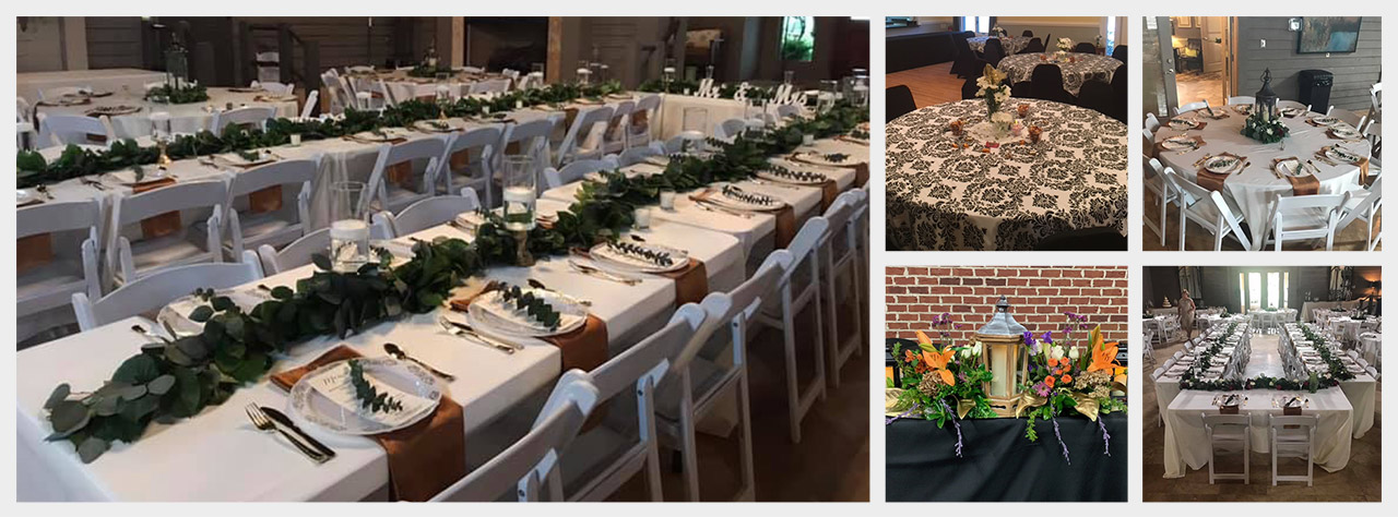All of our linens are clean and pressed for the best look possible! If you happen to not see what you are looking for we would be happy to discuss ordering items for you!